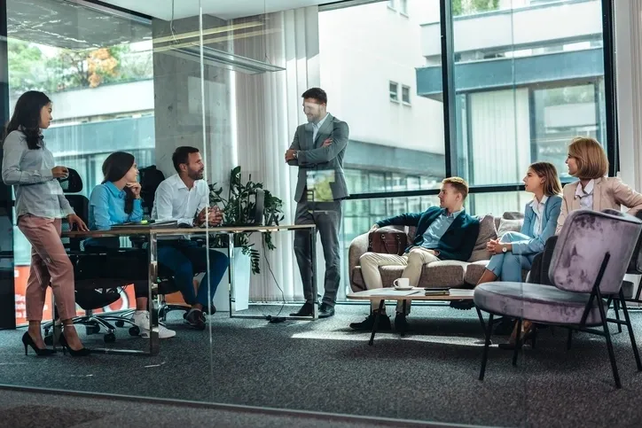 - Design spaces that facilitate what they can’t get on Zoom: spontaneous, creative energy. Invest in huddle rooms, social hubs, and technology that make hybrid meetings seamless.